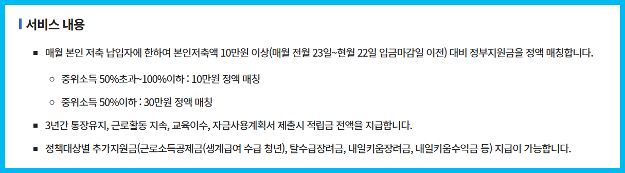 청년내일저축계좌 신청방법 및 지원대상내용 확인